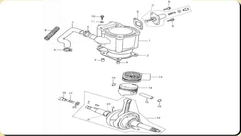 Zylinder, Kolben, Kurbelwelle